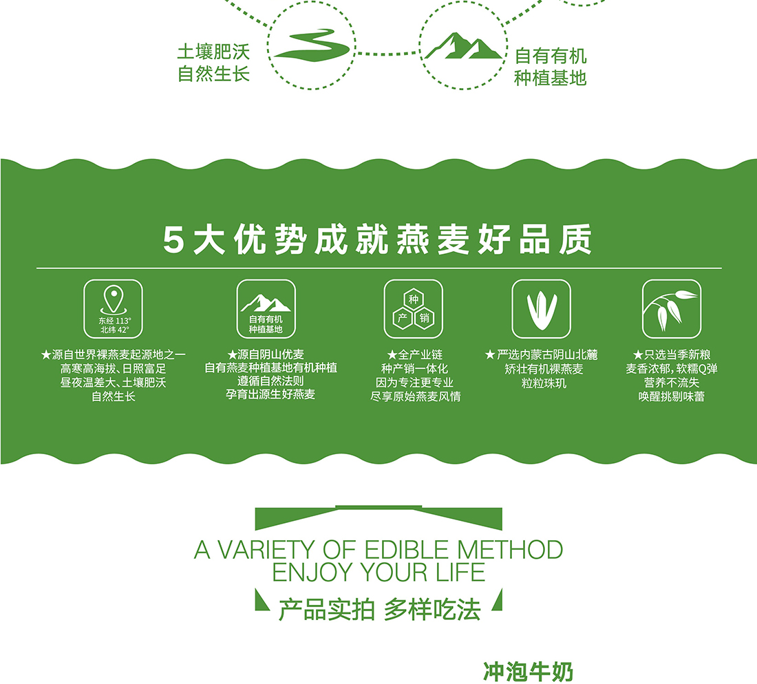 內(nèi)蒙古,世界裸燕麥起源地之一;陰山源生燕麥在此初生滿足生長規(guī)律一切所需,高寒、高海拔、日照充足;遵循自然法則,靠天滋養(yǎng),自然生長