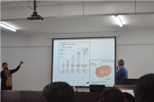 培訓(xùn)會(huì)上,Harrie先生對(duì)馬鈴薯規(guī)范化種植管理的重要意義進(jìn)行了深刻闡述,并就馬鈴薯各生長(zhǎng)周期內(nèi)易發(fā)、頻發(fā)的病蟲(chóng)害及其防治措施與馬鈴薯種植、生產(chǎn)全程現(xiàn)代化管理等內(nèi)容進(jìn)行了講解,理論聯(lián)系實(shí)際,內(nèi)容詳實(shí)全面,得到了參訓(xùn)學(xué)員的廣泛認(rèn)可。培訓(xùn)全程為英語(yǔ)授課,為了使參訓(xùn)學(xué)員能夠真正聽(tīng)得懂、學(xué)得會(huì),公司特聘內(nèi)蒙古農(nóng)業(yè)大學(xué)農(nóng)學(xué)專(zhuān)業(yè)教授進(jìn)行了全程翻譯。
